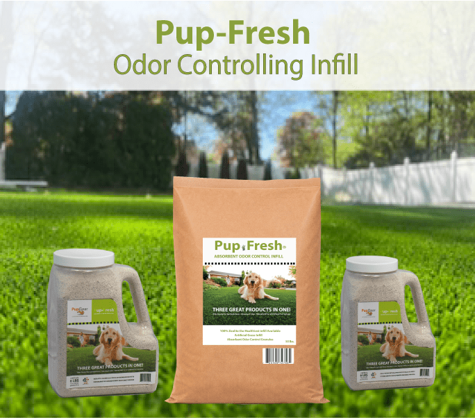 Different types of synthetic turf require different amounts of infill. For Pup-Grass®, we recommend applying between 1/8 lb and 1/4 lb of Pup-Fresh™ infill per square foot.