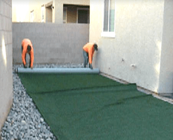 Before stretching, pre-cut the grass so it roughly fits the entire area. Do not worry about perfect edges yet. Final trimming will be done after the turf is fully stretched and secured.