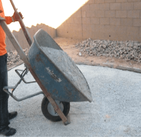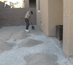 - Once vegetation is removed and the soil is neutralized or excavated, cover the area with base material. Place wheelbarrow piles 2–3 feet apart Spread evenly with a shovel or rake