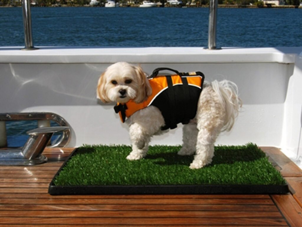 The criteria we set was the dog potty had to be a safe, surface that dogs would use with little to no training — something lightweight that was easy to stow away, sanitary, odor-free, and would not scratch a boat’s gel coat. My first thought was fake turf. But the moment I began testing the artificial turfs available at that time, I quickly realized something : They were anything but Pet-Friendly.